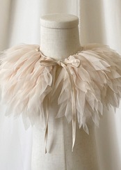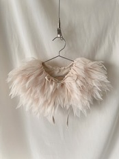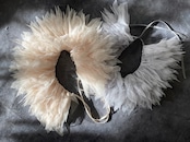 羽のようにカットしたチュール生地を、ニットのように編み込んで制作しています。