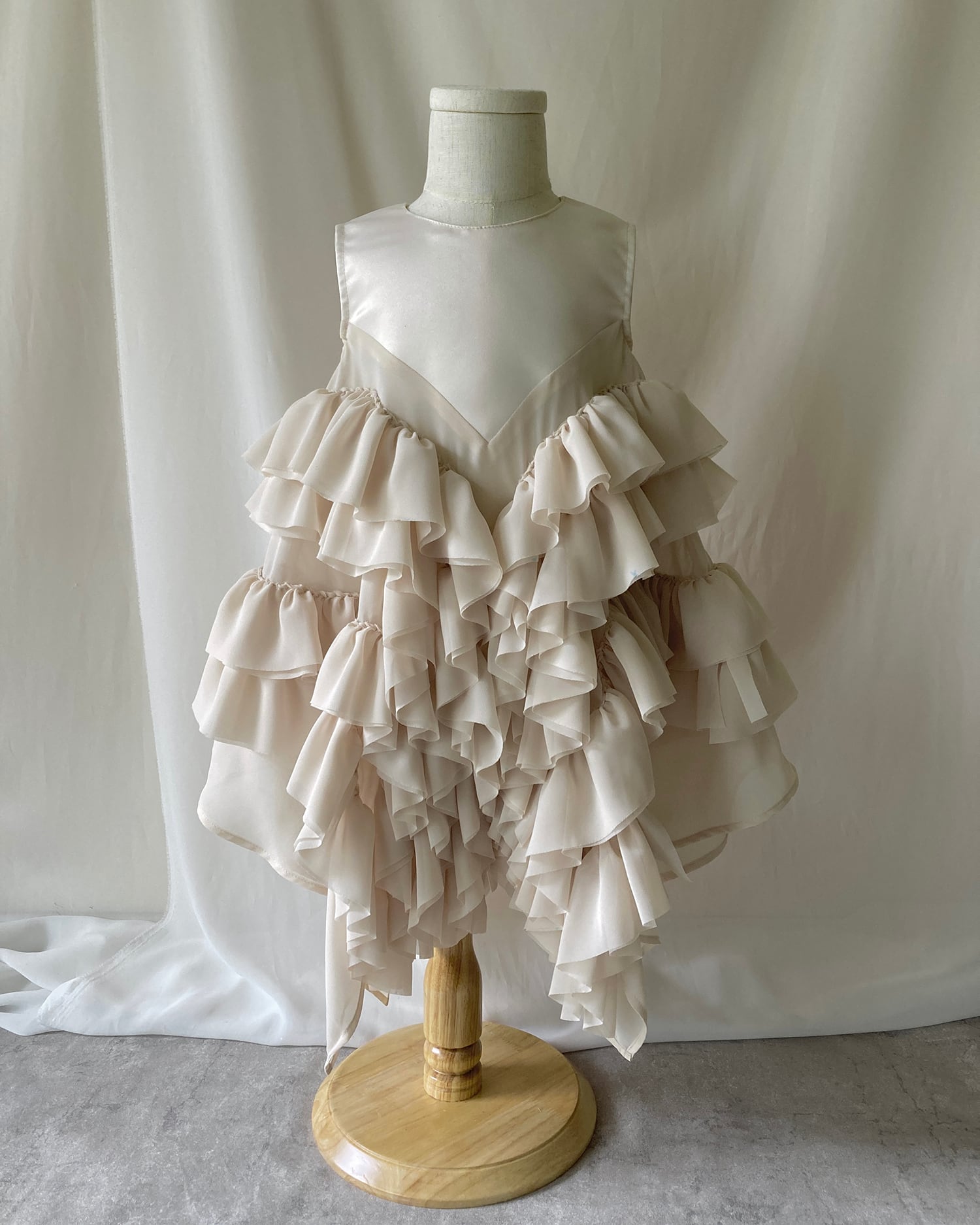 【受注生産】Satin & chiffon frill dress 【100-110または120-130】